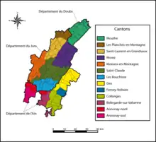 Avignon-lès-Saint-Claude, Chassal, Cuttura, La Rixouse, Lajoux, Lamoura, Lavancia-Epercy, Lavans-lès-Saint-Claude, Les Molunes, Leschères, Molinges, Ponthoux, Ravilloles, Saint-Claude, Saint-Lupicin, Septmoncel, Vaux-lès-Saint-Claude, Villard-Saint-Sauveur, Villard-sur-Bienne