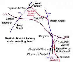 Upperthorpe and Killamarsh was a railway station that served the villages of Killamarsh and Upperthorpe in Derbyshire, England. It was one of three stations serving Killamarsh. The station was on the Sheffield District Railway which ran between Sheffield Victoria and Shirebrook North on the Lancashire, Derbyshire and East Coast Railways network of lines in the region.