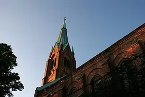 The church is situated in the neighborhood of Uranienborg, next to Uranienborg Park behind the Royal Palace. Both the church and Uranienborg school just below were constructed in 1886. The church was built of brick and was the most expensive of all churches erected within Christiania (now Oslo) at this time. The church was designed by Balthazar Lange who was city architect in Christiania from 1898 to 1920. It was consecrated on 22 December 1886. The building is given a Gothic feel and was decorated with stained glass by the artist Emanuel Vigeland. The church was initially decorated with frescoes by Enevold Thømt, which have since been lost. In 1930 the interior received its present form by architect Arnstein Arneberg. The church has 1020 seats.[2]