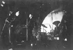 The band's two tracks, "Proces" ("The Trial") and "Bez naslova" ("Untitled") were released on the Artistička radna akcija (Artistic Work Action) various artists compilation in late 1981, on which Nešović's Defekno Efektni also appeared.[3] The band performed two more songs, "Beograd" ("Belgrade") and "Ipak bojim se rata" ("Still, I'm Afraid of the War"), written before Nešović's departure, however, they were never released.[2] After the compilation release, the band moved towards playing post-punk, influenced by Joy Division and Bauhaus, with the vocalist Branislav "Kebra" Babić, which was not well received by the audience.[4]