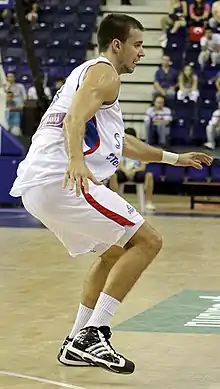 Uroš Tripković (Serbian Cyrillic: Урош Трипковић; born September 11, 1986) is a Serbian former professional basketball player. He represented the Serbian national basketball team internationally. Standing at 6 ft 5 in (1.96 m), he played as a shooting guard and was known as a good 3-point shooter.