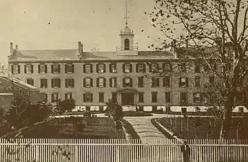 On 3 June 1848,[2] Sister Ursula and eight other sisters, Sisters Ann de Sales Farren, Hieronimo O'Brien, Anacaria Hoey, Clare McDurby, Mary Aloysia Lilly, Mary Eliza Dougherty, and Agatha O'Keefe,[4] arrived in Buffalo.[3] The Sisters moved into an unused brick schoolhouse and adjoining cottage that had been donated by Bishop Timon,[5] which they outfitted with 100 beds and living quarters for themselves.[3] On 1 October 1848, Sisters of Charity Hospital officially opened as Buffalo's first large healthcare facility, under the leadership of Sister Ursula.[2]