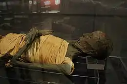 The mummy is very well-preserved, and is also known for having an ancient but sophisticated prosthetic pin in its left knee.