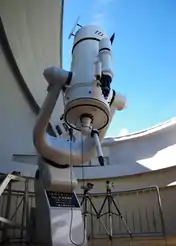 The main telescope of the observatory is 600 mm Cassegrain reflector constructed by Mitaka Kohki. It has the "Wonder Eye" flexible focal extending system which provides "barrier free" star watching.[3]