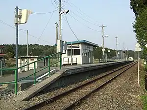 The station has one side platform, serving a bidirectional single track. The station building is built directly on the platform. The station is unattended.