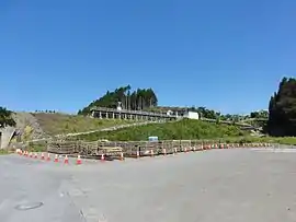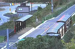 Utatsu Station (歌津駅, Utatsu-eki) was a JR East railway station located in Minamisanriku, Miyagi Prefecture, Japan. The blue-roofed station platform remained standing after the 2011 tsunami, however the adjacent railway bridge and track (southwest of the station) collapsed. Services have now been replaced by a provisional bus rapid transit line.
