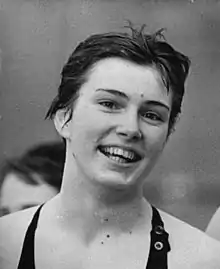 Ute Noack (born 17 January 1943) is a retired German butterfly swimmer who won a gold medal in the 4 × 100 m medley relay at the 1962 European Aquatics Championships, setting a new world record. For this achievement, the relay team members were named German Sportspersonalities of the Year in the team category in 1962.[1] Noack also won the silver medal in the 100 m butterfly at the same championships.[2] She competed at the 1964 Summer Olympics in the 100 m butterfly, but was eliminated in the preliminaries.[3]