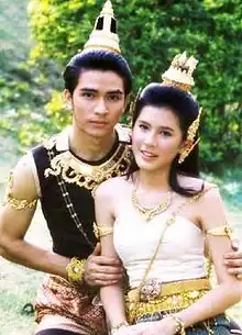 Uttai Tawee grew up to be the most beautiful girl in the kingdom, and all of the men fell in love with her. A young prince who passed by her village saw her and they fell in love. They were not allowed to marry because Uttai Tawee was only a poor commoner, while the prince was a wealthy nobleman. The prince's mother disliked Uttai Tawee, since she had already promised that the prince would marry the daughter of a friend of hers, an evil princess from another kingdom. The queen set Uttai Tawee the task of building a house of gold, and the prince was tasked with building a bridge of gold, before they might marry. Uttai Tawee used her magic to make the golden house in seconds. While the prince instructed workers to build the bridge. The evil princess and her men destroyed every bridge the prince built because she was angry that he had rejected her for a commoner. Uttai Tawee and the prince prayed to the gods and asked them for help. If they were soul mates, please allow the bridge to be complete and it did. Finally Uttai Tawee and the prince married and lived very happily. The jealous princess would travel to the prince's kingdom to rob and terrorize his people. Everyone knew that the bandits were from her kingdom but couldn't do anything about it as there was no proof that it was them. The prince had to decide to go to the evil princess's kingdom to ask her to spare his people from her attacks. This left Uttai Tawee alone with his parents, who by now accepted her as their daughter-in-law. Before they parted the prince had life size statues of them made. He took her statue with him while she kept his.