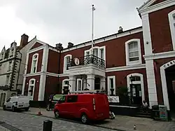 The foundation stone for the building was laid by Lord Waterpark of Doveridge Hall on 25 August 1853.[2] It was designed by the local architect, Thomas Fradgley, in the neoclassical style, built in red brick with painted ashlar stone dressings at a cost of £4,000 and was officially opened on 29 November 1854.[2] The opening ceremony was used as an opportunity to raise funds for the Patriotic Fund which supported widows and orphans created by the Crimean War which was ongoing at the time.[3]