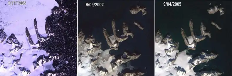 - ↑ "Melting glacier uncovers island". Credit: USGS Landsat Project. CNET.com. 2007-04-26. Archived from the original on 2012-06-29. Retrieved 2007-09-23.
