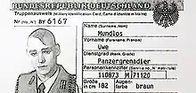Mundlos was eventually promoted to the rank of corporal, and to lance corporal in the reserves upon his retirement.[10] He was trained with assault rifles, machine guns and the Walther P1.[8] Mundlos had "performed well" as a gunner and assistant to his company squad leader, according to a certificate from the end of his military service.