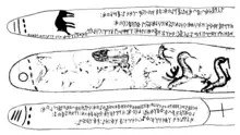 ![]() Deer stone stele, erected circa 1000 BCE, on which was added the Uyuk Turan Inscription in the 8th-9th centuries CE.[1] | |