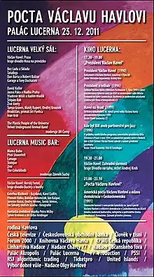 Tribute to Václav Havel (Czech: Pocta Václavu Havlovi) was an event held in memory of Václav Havel, the last Czechoslovak and the first Czech President, writer, playwright and human rights activist. The concert took place in Lucerna Music Bar in Prague on 23 December 2011, five days after the death of Havel.