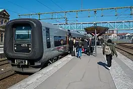 The West Coast Line (Swedish: Västkustbanan) is a railway line between Gothenburg and Lund,[1] which runs along the West Coast of Sweden. It is electrified all the way, but as of 2021 was still not completed, as the part through Varberg and the part between Helsingborg and Ängelholm are both single-track.