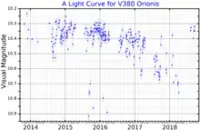 - 1 2 3 4 5 6 7 Alecian, E.; Wade, G. A.; Catala, C.; Bagnulo, S.; Böhm, T.; Bouret, J.-C.; et al. (2009). "Magnetism and binarity of the Herbig Ae star V380 Ori†". Monthly Notices of the Royal Astronomical Society. 400 (1): 354–68. arXiv:0907.5113. Bibcode:2009MNRAS.400..354A. doi:10.1111/j.1365-2966.2009.15460.x. S2CID 6537125.