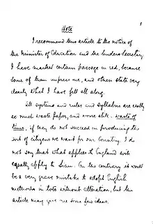 - At the Mahadlek College, what I want is that Education should mean the turning of a boy into a fine young man and a good citizen, not to crush out all individuality under the weight of Syllabus and System! and I want Education to be interesting to the boys so that they would in later days be able to look back upon School life as something peculiarly pleasant to have passed through. My College is not to be compared to other schools, where the aim is different. If I had wanted just the ordinary kind of school, I would have founded a day school, not a boarding one." [1]