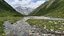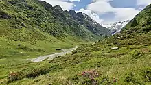 The valley entrance is flanked on the left and right by two alps, Ca d'Starnam (2,024 m (6,640 ft)) to the west and Petpreir (1,989 m (6,526 ft)) to the east.