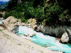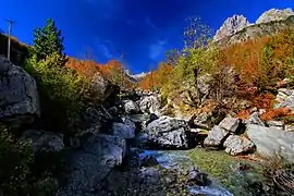 Valbonë (Albanian definite form: Valbona) is a village in the Kukës County, northern Albania. It is part of the former municipality Margegaj, and situated in the valley of the river Valbonë, south of the mountain Maja e Thatë. At the 2015 local government reform it became part of the municipality Tropojë.[1] As one of the main settlements of Valbonë Valley National Park, it provides appropriate accommodation for visitors and tourists, mostly in typical alpine houses or inns (Albanian: hane).[2]