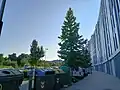 The neighbourhood is built around a large green area, the Valdecorvos Park, to the south of which flows the Valdecorvos stream. It is the largest park in the east of the city. In addition to the trees, it has pedestrian paths and a wooden bridge to cross the Valdecorvos stream, a footbridge on stilts to connect it to the Costado area and wooden stairs to Prado Novo street. It has a viewpoint in the northern part with views to the east of the city.[12] There is an oak grove and the viewpoint is designed as a rest area with urban furniture.[11] In addition to this park, there are gardens linked to each block of buildings and, to the east of the neighbourhood, the As Regas park.[3]