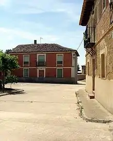 A view of Valdunquillo, with the Palace of the Dukes of Alba in the background (the Pink building)