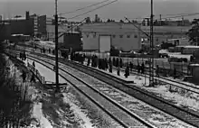 The Strömberg halt was closed on 30 May 1976 and was replaced by the contemporary station of Valimo, some 300 metres (0.19 mi) to the east from the old platforms towards Helsinki. Unlike Strömberg, however, Valimo was intended to serve the entire industrial area in Pitäjänmäki. During the construction of the Leppävaara City Line, an additional pair of tracks from Helsinki to Leppävaara exclusively to be used by trains on the Helsinki commuter rail network, temporary platforms were built in Valimo in 1995. The wholly renovated station was inaugurated on 16 October 2000. By that time, the area served by the station had over 9,000 jobs.
