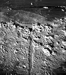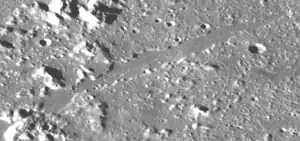 Vallis Alpes (Latin for "Alpine Valley")[1] is a lunar valley feature that bisects the Montes Alpes range. It extends 166 km from the Mare Imbrium basin, trending east-northeast to the edge of the Mare Frigoris. The valley is narrow at both ends and widens to a maximum width of about 10 km along the middle stretch. The selenographic coordinates of the center of this feature are 49°13′N 3°38′E / 49.21°N 3.63°E.[1]