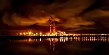 The plant was established under the mega power project policy.[4] The erstwhile Tamil Nadu Electricity Board (TNEB) and the NTPC, in a joint venture, formed the NTPC Tamil Nadu Energy Company Limited. The foundation stone for the Vallur thermal plant was laid on 5 September 2007, with an estimated cost of ₹80 billion (€100 million),[5] and the ₹19,900-million main plant package to supply steam generators and turbine for stage I was awarded to Bharat Heavy Electricals Limited (BHEL), a state-run power equipments manufacturer, on 13 August 2007.[6][7] The projected was constructed in two phases: phase I with two 500 MW units at a cost of ₹54 billion and phase II with one 500 MW unit at a cost of ₹30 billion. Initially expected to be operational by 2010, the project was delayed due to the late implementation of the coal-handling facility established by the BHEL.[5] Erection of the boiler column began on 5 January 2009.[6]