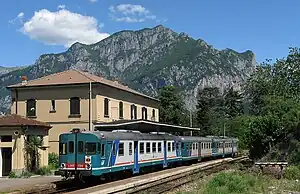 Valmadrera railway station is a railway station in Italy. Located on the Como–Lecco railway, it serves the municipality of Valmadrera in Lombardy. The train services are operated by Trenord.