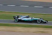 Bottas and Massa remained teammates at Williams for the 2016 season. They were the only two drivers to achieve points finishes in all of the first five races of the season.[35] Bottas claimed third place at the Canadian Grand Prix, matching his result of the previous year.[36] This turned out to be Williams's only podium finish of the season. He achieved an unofficial Formula One record speed of 378 km/h (235 mph) at the Baku City Circuit during qualifying for the European Grand Prix.[37] The second half of the season was less eventful for Bottas. He finished 8th in the Drivers' Championship, once again ahead of his teammate Massa's 11th place. He also out-qualified his teammate 17–4 throughout the season.[38]