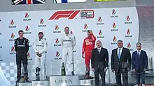 - ↑ "Hamilton takes 100th F1 victory after late rain shower denies long-time leader Norris at Sochi". Formula 1. 26 September 2021. Retrieved 1 June 2023.