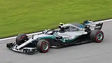 On 13 September 2017, Mercedes announced that Bottas would be driving for them once again in the 2018 season.[59] Bottas started the season poorly in Australia, where he crashed out in Q3 and was given a five-place grid penalty for changing his gearbox as a result, meaning he would start the race in 15th place; his teammate Hamilton started the race from pole.[60] In the race, Bottas made it up to the eighth place, benefiting from the virtual safety car as well as performing a few overtakes on a track where it is difficult to pass cars.[61] Bottas bounced back in Bahrain by putting his car third on the grid, behind the Ferraris of Vettel and Räikkönen but ahead of Hamilton who qualified fourth. In the race, Bottas got past Räikkönen, at the start. At the end of the race, Vettel's tyres began to go off quickly, and Bottas closed the gap to Vettel to within a second and eventually finished second, with Hamilton just a few seconds behind him.[62]