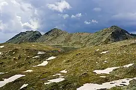 Valyavishki Chukar (Bulgarian: Валявишки чукар) is a 2,664 m high peak in the Pirin mountain range, south-western Bulgaria. It is located on the northern part of the main mountain ridge at the intersection of three cirques — Belemeto, Valyavishki and Prevalski.[1][2] To the southwest along the main ridge there is a lower unnamed summit linked with a shallow rugged saddle as seen from the Tevno Lake. To the southwest is the saddle Mozgovishka Porta, where the main trails from the Demyanitsa refuge to the Tevno Lake pass though.