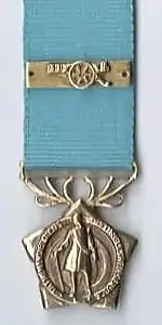 The Van Riebeeck Decoration, post-nominal letters DVR, is a South African military decoration for bravery which was instituted by the Union of South Africa in 1952. It was awarded to officers for distinguished service in the field.[1][2]