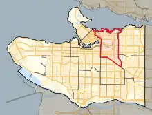 This riding is located in the east end of Vancouver, running from the eastern parts of the Downtown eastward to Commercial Drive (the western parts of the downtown make up the neighbouring riding of Vancouver-False Creek). The riding consists of the part of its namesake neighbourhood of Mount Pleasant east of Main Street, all of Strathcona, Downtown Eastside and Gastown, as well as part of Chinatown, the part of Grandview-Woodland west of Commercial Drive and the part of Kensington-Cedar Cottage north of Kingsway.