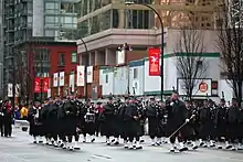 The Vancouver Police Pipe Band is a Canadian pipe band based in Vancouver, British Columbia. It is the official police band of the Vancouver Police Department and is considered to be the official band of the City of Vancouver. It performs for all citywide, provincial, national and international events available to them. Like many pipe bands in the British and Canadian Army, they performs in full highland dress which includes a feather bonnet. It is the oldest non-military pipe band in British Columbia and ranks amongst the most senior police pipe bands in Canada.[1][2] In its international visits, it has performed in countries such as Singapore, Japan, and the United States.
