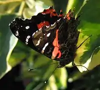 The wingspan is 54–60 mm. It is darker coloured [than Vanessa indica], with the band of the forewing lighter red and strongly sinuate, and particularly large spots in the narrow marginal band of the hindwing, the apex of the forewing, moreover, being more angulate than in atalanta. Vanessa occidentalis Fldr. is a smaller and darker form from Madeira, of which single specimens are also recorded from Portugal[1]
