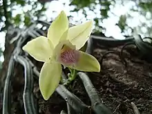 Vanilla aphylla is a species of vanilla orchid. It is native to Southeast Asia.[1] It is found throughout Southeast Asia including; Laos, Thailand, Malaysia and Singapore.[2] Like all members of the genus Vanilla, V. aphyllum is a vine. It uses its fleshy roots to support itself as it grows.