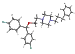 • Fc1ccc(cc1)C(OCCN2CCN(CC2)CCCc3ccccc3)c4ccc(F)cc4