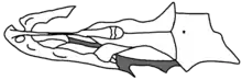 | Drawing of partially reconstructed skull (top view) | |
