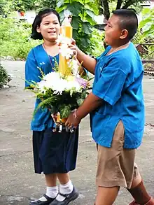 Men usually carry the Vassa candle, bringing it to Buddhist pagodas in an elaborate procession.[9][10] Carrying and offering the Vassa candle is an honor that is highly sought by government officials and benefactors of Cambodian pagodas.[11]