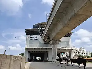 Vastral Gam is the elevated western terminal metro station on the East-West Corridor of the Blue Line of Ahmedabad Metro in Ahmedabad, India. This metro station consists of the main Ring Road Metro Circle which leads towards the Diesel Loco Shed, Vatva in the south and towards Naroda, a town in Gujarat in the north. This metro station was opened to the public on 4 March 2019.[1]