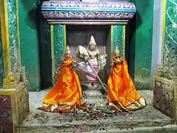 Arunagirinathar was a 15th-century Tamil poet born in Tiruvannamalai. He spent his early years as a rioter and seducer of women. After ruining his health, he tried to commit suicide by throwing himself from the northern tower of Annamalaiyar Temple, but was saved by the grace of god Murugan.[5] He became a staunch devotee and composed Tamil hymns glorifying Murugan, the most notable being Thirupugazh.[6][7] Arunagirinathar visited various Murugan temples and on his way back to Tiruvannamalai, visited Vayalur and sung praises about Murugan.[8]