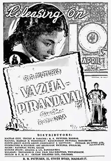 Vazha Pirandhaval (transl.She was born to live) is a 1953 Indian Tamil-language film directed and produced by T. R. Ramanna. The film stars T. R. Rajakumari and Sriram. It was released on 10 April 1953.[2]