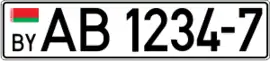 Belarusian vehicle registration plates are currently composed of four digits, two letters and another digit (e.g. 1234 AB-5). The final digit indicates the region of Belarus in which the car was registered. The placement of the series letters varies for the weight class or type of the vehicle: