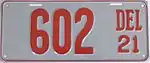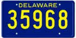 - ↑ "Old Delaware License Plates". LeatherLicensePlates.com. Retrieved June 30, 2017.