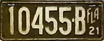 1921 | Embossed white serial on brown plate with border line; "FLA 21" at right | none | 12345-A | Coded by horsepower class (A) | |