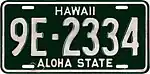 1953–56 | Embossed golden yellow on black; "HAWAII" at bottom, offset to left | none | 1A-123 A-123 A-1234 1A-1234 |
