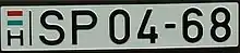 Vehicles used for motorsport purposes can ask for SP plates since October, 2012. The format is same as the others above. No euroband version. This plate cannot be used to drive in regular traffic on an everyday basis.[21] SP plates will be replaced with general temporary I plates according to a Ordinance, accepted in 2019. Date of introduction was moved from Jan, 2021 to Jul, 2022. [22][23]