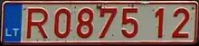 Vehicles issued temporary registration in Lithuania are noted by red alphanumeric characters on white background.