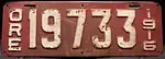 1916 | Embossed white serial on dark red plate; vertical "ORE" and "1916" at left and right respectively | 12345 | 1 to approximately 34000 | |